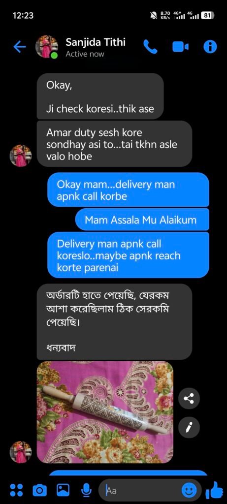 : পণ্য গ্রহণের সময় অনুগ্রহ করে একটি স্পষ্ট আনবক্সিং ভিডিও ধারণ করুন। পণ্যে কোনো ত্রুটি বা ক্ষতি পাওয়া গেলে ভিডিও যাচাইয়ের পর আমরা প্রয়োজন অনুযায়ী রিটার্ন বা রিপ্লেসমেন্ট এর ব্যবস্থা করব।